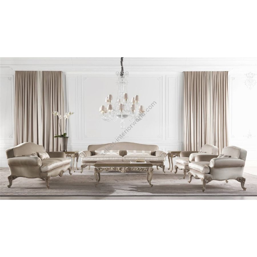 The majestic elegance of the rococo style in a refined line of furnishings that represents a real tribute to the most authentic classic style. The line includes different types of seats, coverings in precious silks, refined details such as lam inserts or decorative elements that draw ornamental motifs, enhancing the lines of sofas and armchairs.