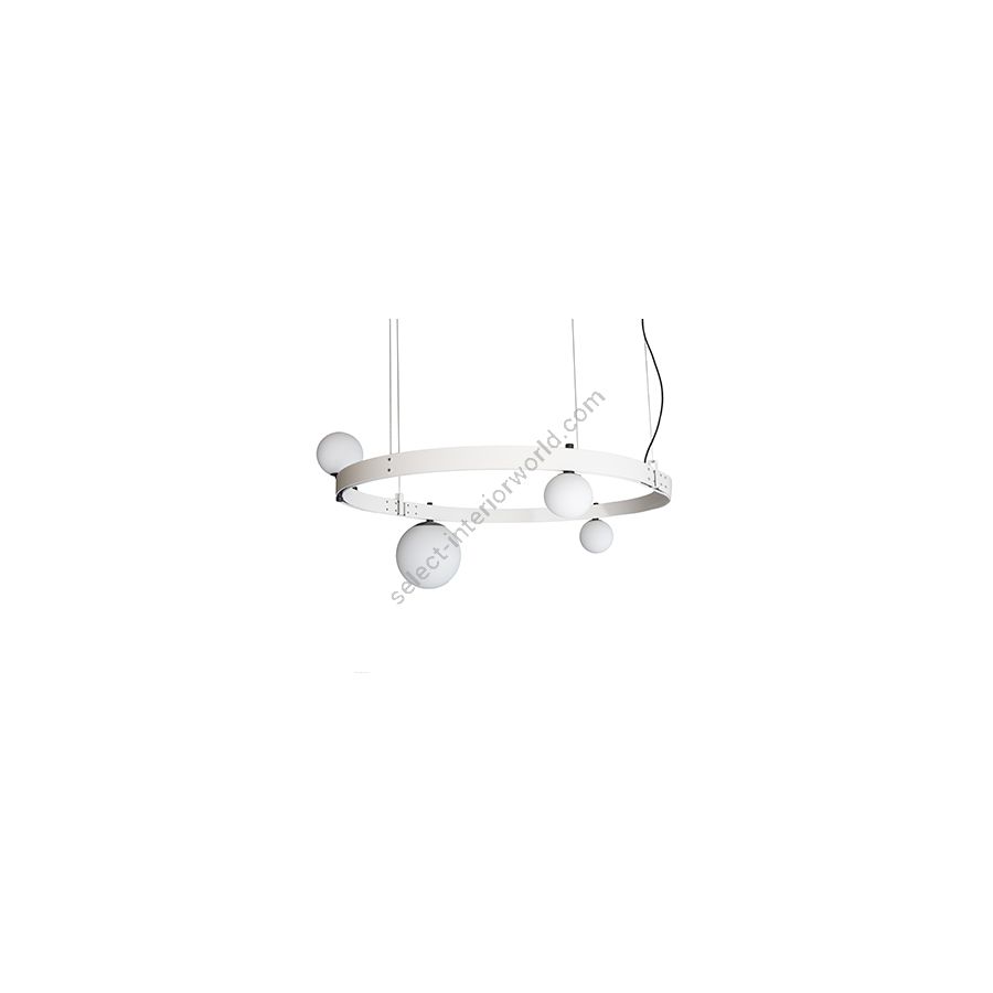 Description: Structure and spotlights in matt white aluminum and spheres in white frosted glass Also available ceiling lamp