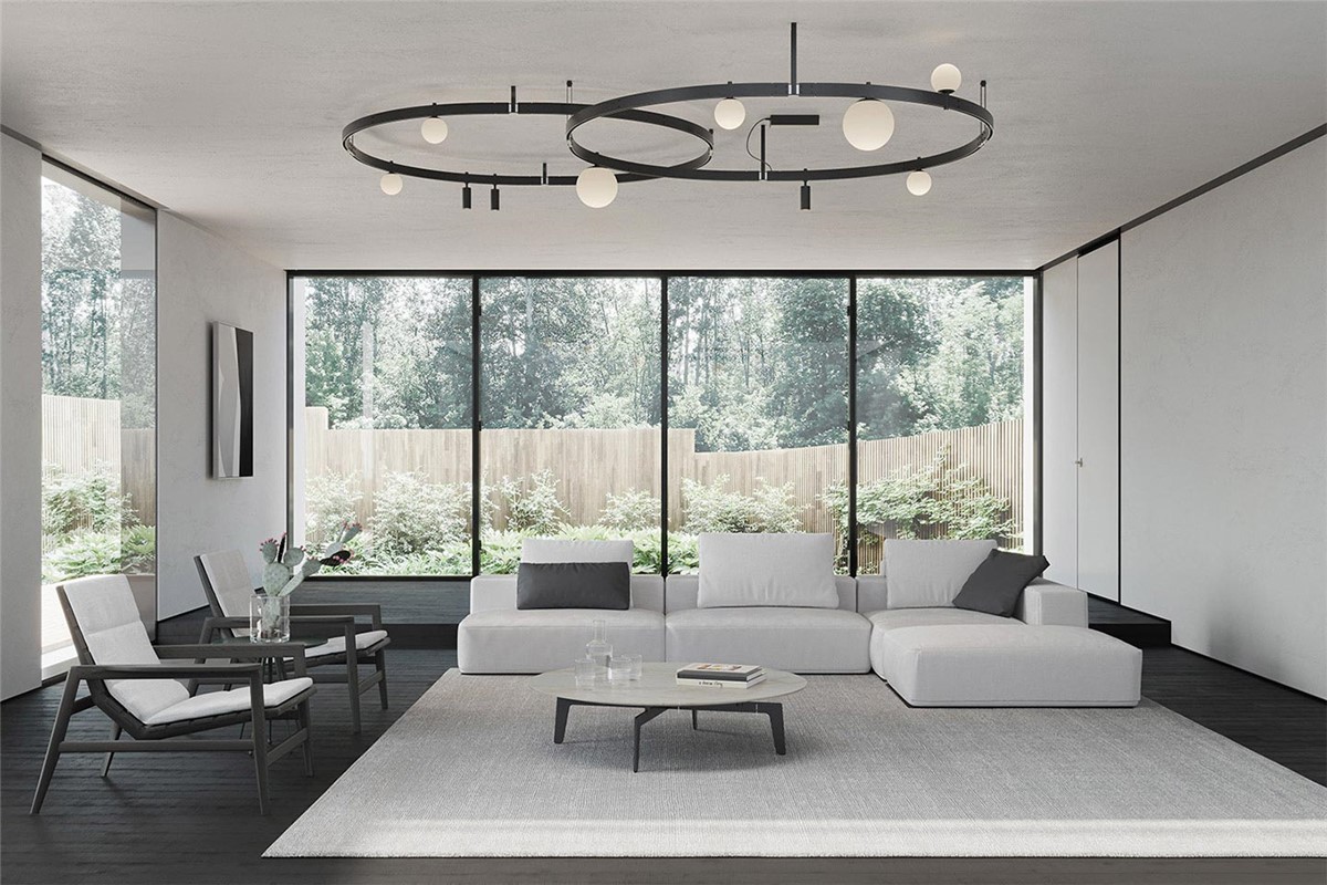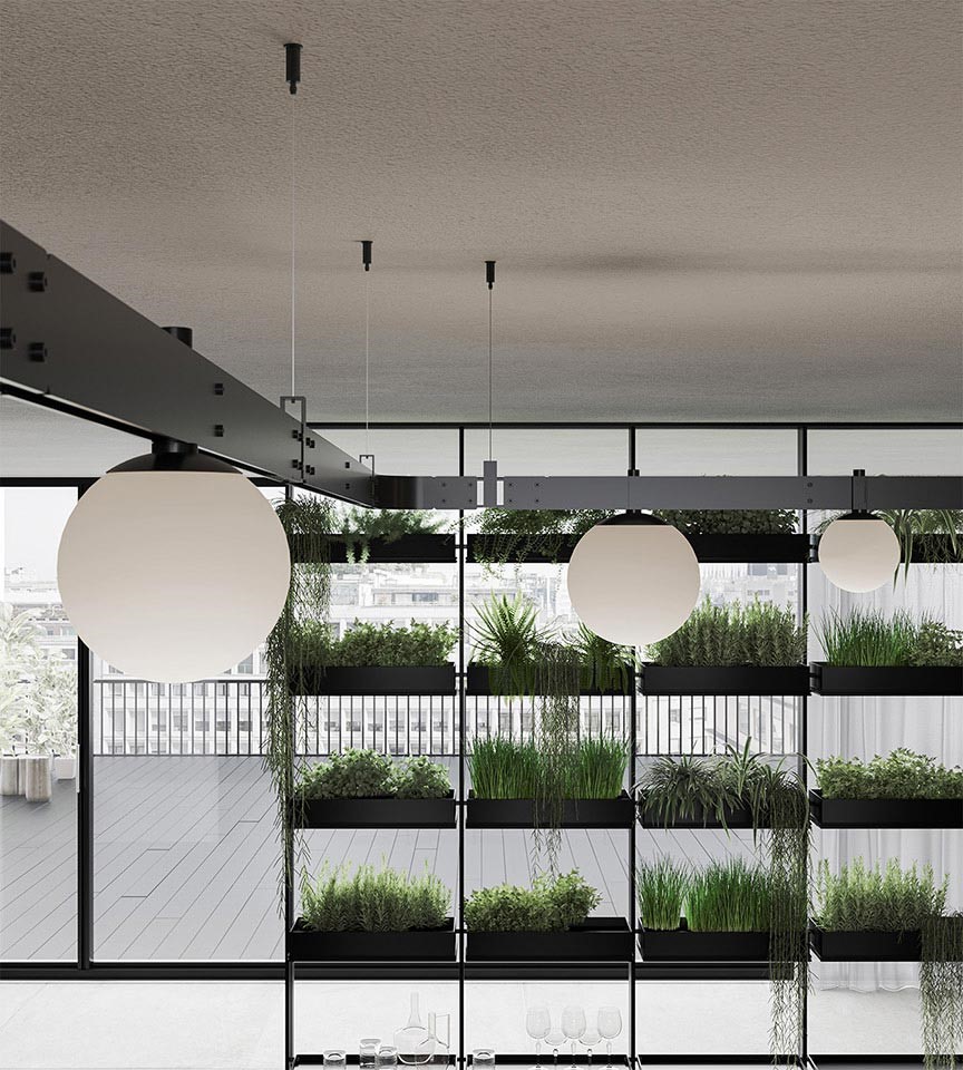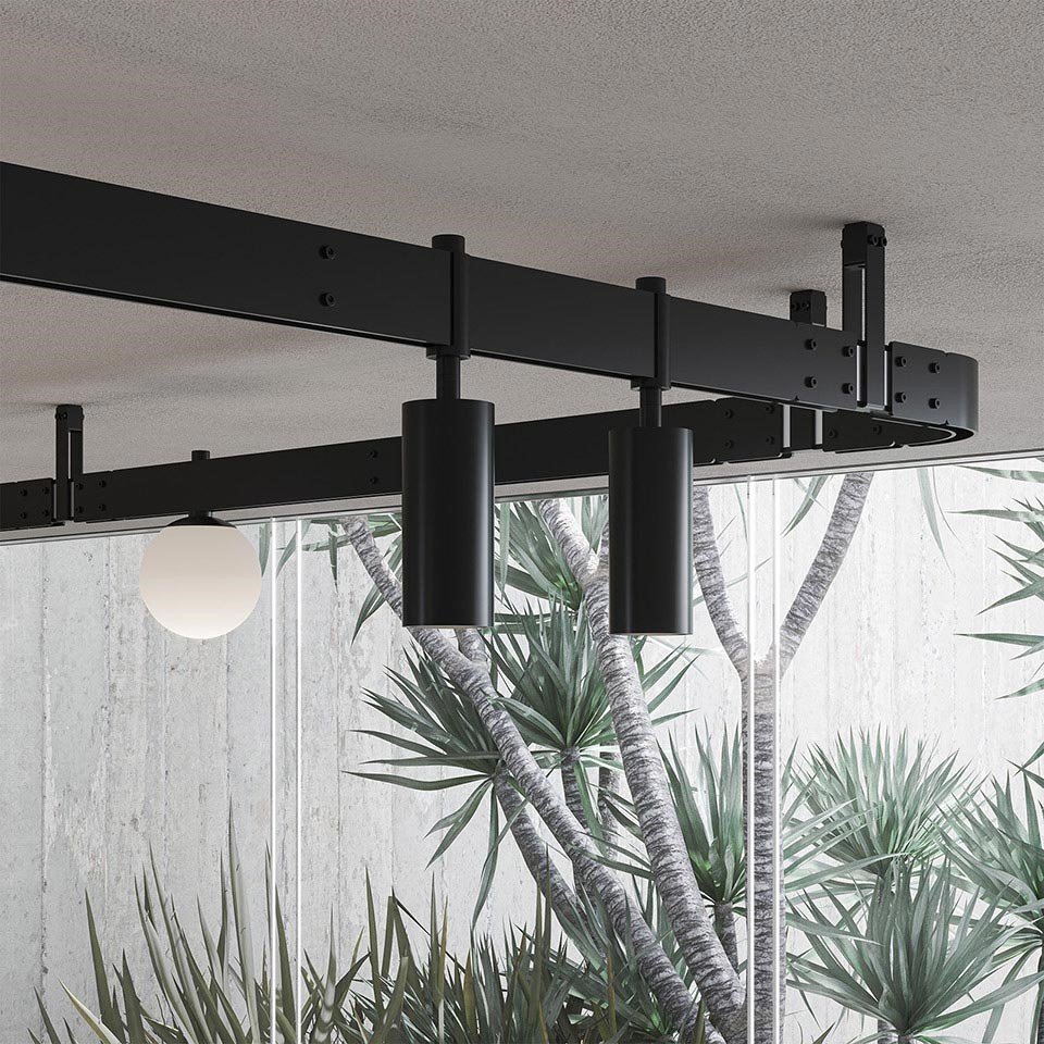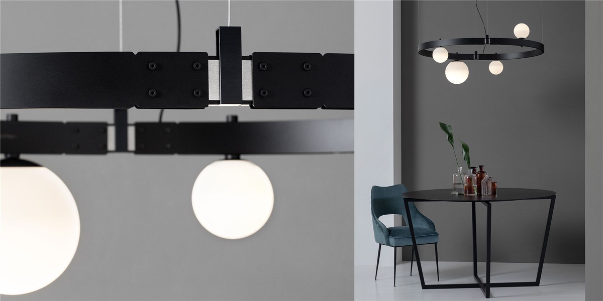 Stant, a series of extremely diverse suspension and ceiling lamps built using straight and curved lines, namely the fundamentals of geometry. Freely inspired by the italian participle “Stante” of the verb Stare, the collection consists of linear and static shapes in aluminum painted in white or black, recalling the engineering structures of the first ‘900. All components are clearly visible, assembled with pins, into which elements such as cylindrical spotlights in two sizes or satin glass spheres in two different diameters can be freely inserted. By adding elements without the need for addition power cables, everyone is free to create a micro-light architecture and generate a small personal universe.