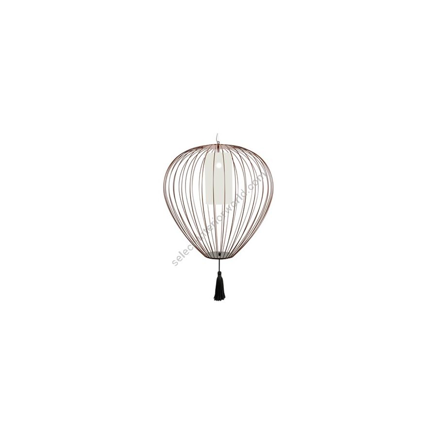 Cell emulates the structure and spirit of Chinese lanterns in the form of a pendants or floor lamps.The lampshades are made of glowing linen hearts for indoor use and opalescent plexiglass for outdoor use. The lamp is completed with a white silk tassel or, in the bronze version, a black silk tassel.