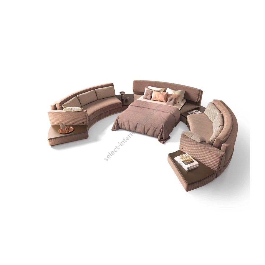 Sofa with a partially removable covering in fabric version. Structure in fir wood and poplar multi-layer. Padding made from non-deformable polyurethane foam with different levels of density. Seat cushion with springs and SOFTSYSTEM technology . The base and the steel front panels are standard. Instead, for different metal finishes, please consider the increase according a price list. This model is available with bed mechanism , with mattress of 11 cm in non-deformable high-density polyurethane , covered with a removable and washable lining with aloe treatment. The quilted parts should be considered as an accessory and increased according a price list.