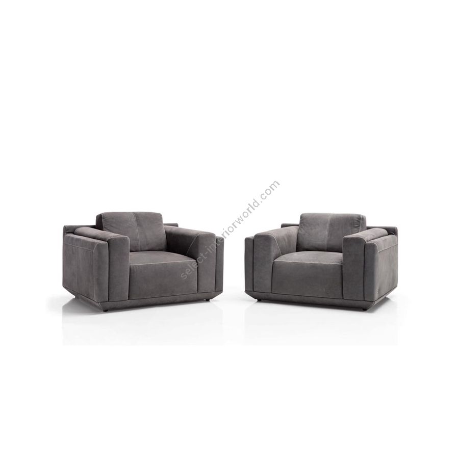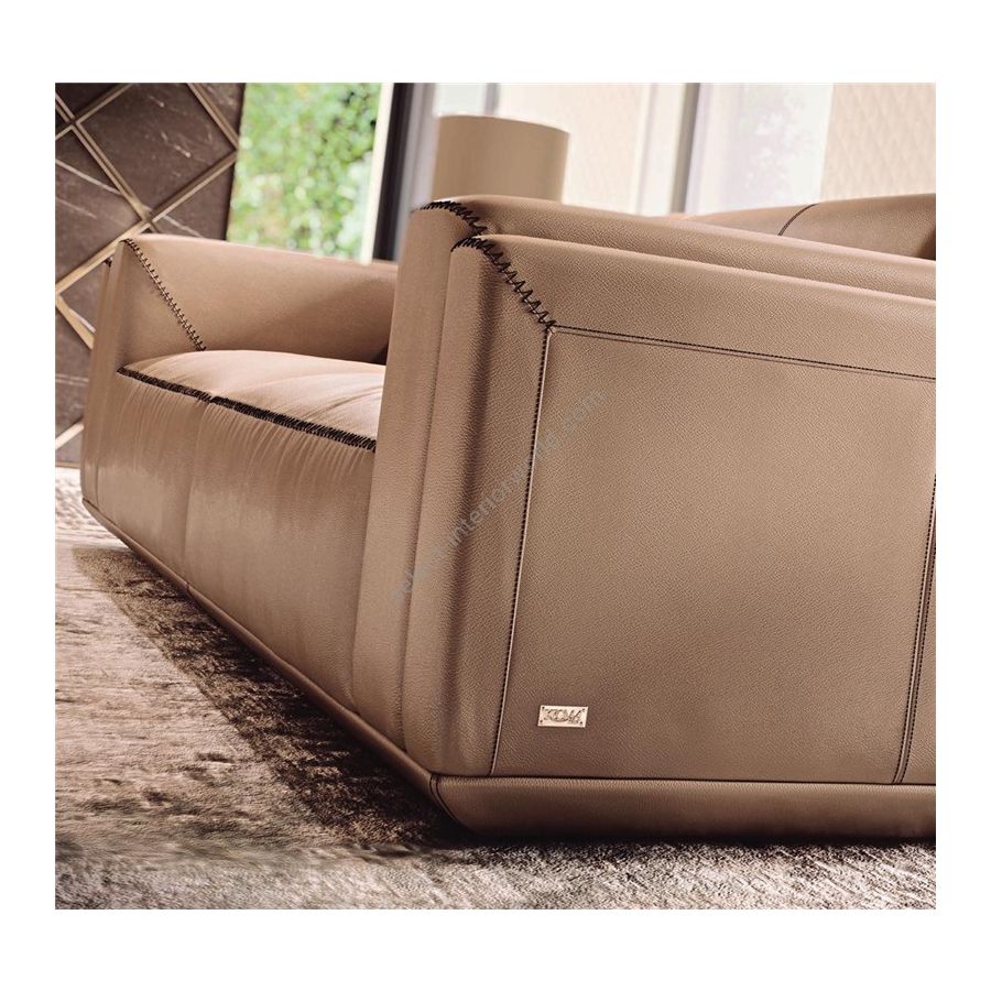 The sofa with semi- removable covering in fabric or leather version, structure in fir wood frame and multi-layer poplar which can be inspected with the help of zip opening underneath. The padding made from non-deformable polyurethane foam of different densities. The seat cushion with springs and Soft System technology. Decorative cushions padded with a goose feather are included in the price.