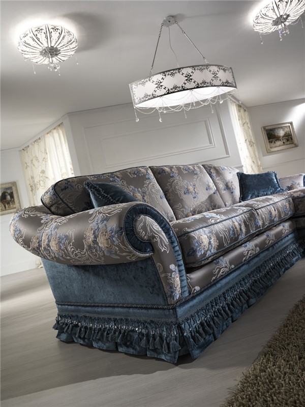 Its harmonious and pure line, free of any extrinsic complexities, where matching, the sinuous spirals and linear shapes are the result of the careful and thorough research that give it a unique and inimitable imprint. The original fabrics and colour matching embellish the Chaise Longue, like an opera where lyrics and melody are harmoniously mingled with counterpoints and effects.