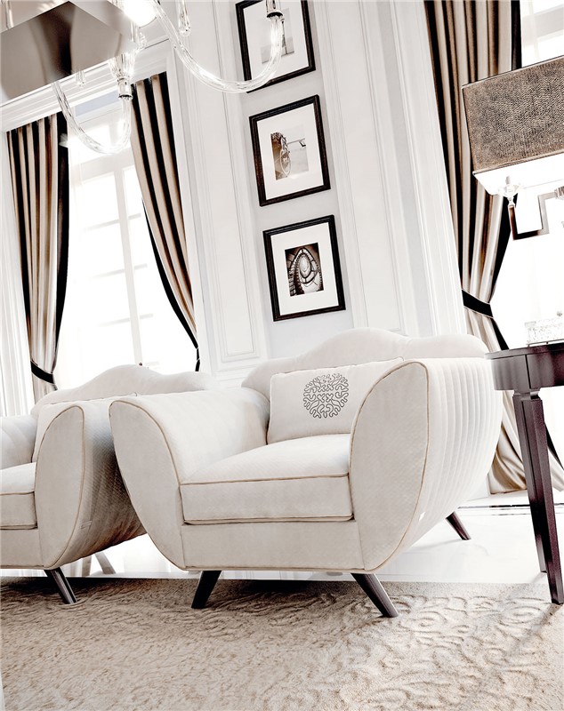 Partially uncoverable sofa. Frame made of ash-wood and multilayered poplar-wood that may be inspected by undoing the zipper underneath the sofa. Variable density polyurethane foam padding, down-feather seat cushions with a system of reversible super-soft springs. The down-feather cushions on the sofa are standard .