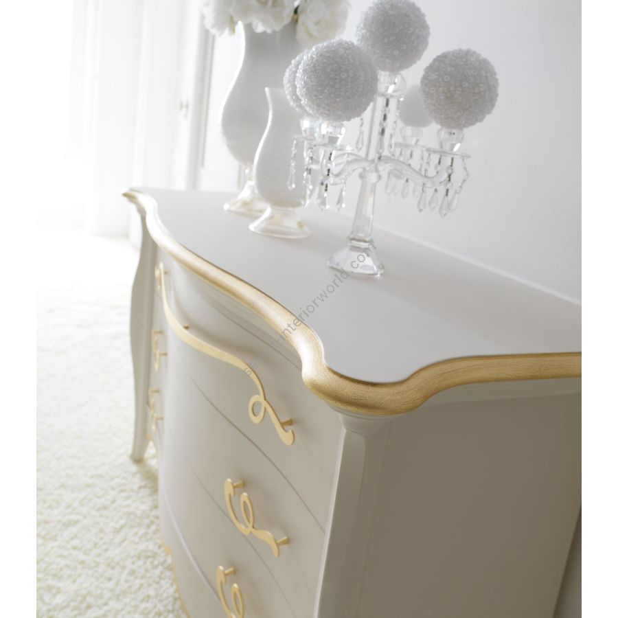 Il comò in legno a tre cassetti con frontali curvi e grembialina sagomata crea insieme ai comodini un gruppo notte perfetto per ambienti sia classici che contemporanei. Perfection in any glamorous bedroom, dining room or hallway.
