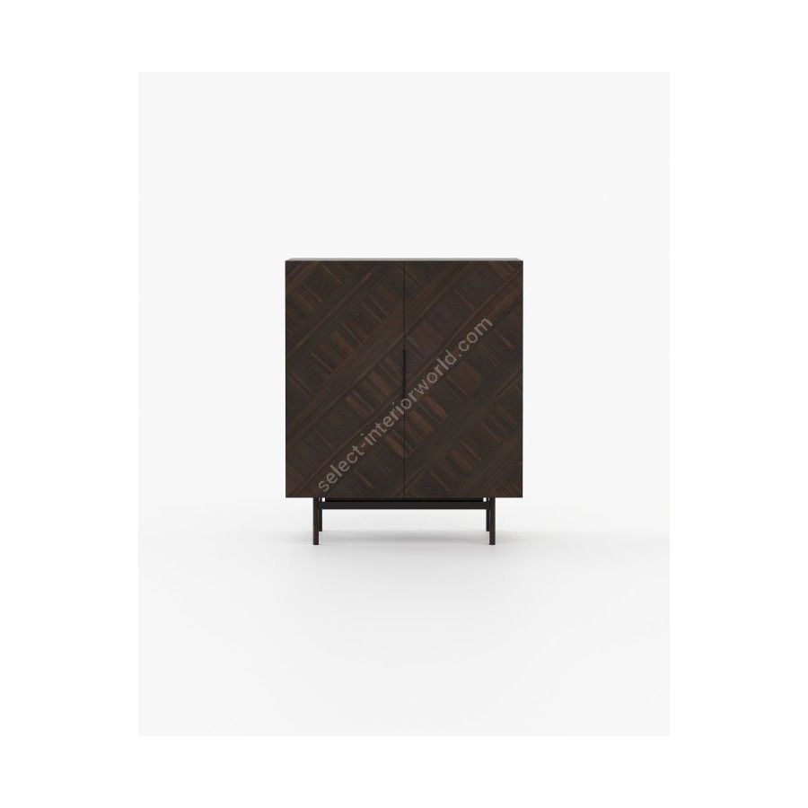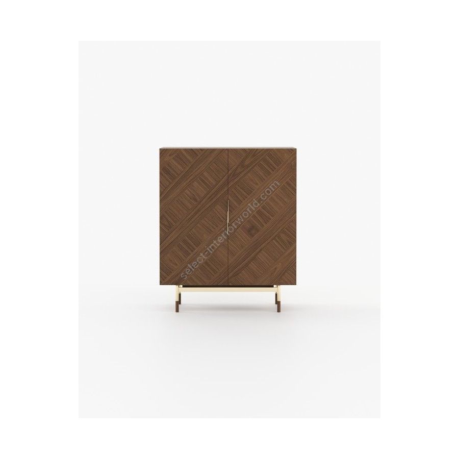 Claud cupboard is ideal for storing glassware or exclusive liquors. This vintage style cabinet features a gold structure and two doors with metal handles. This extremely versatile cabinet has a striking geometric wood body, perfect to any living or dining room.