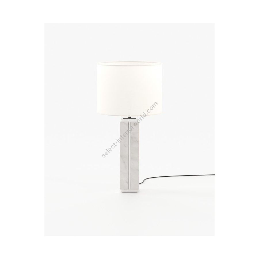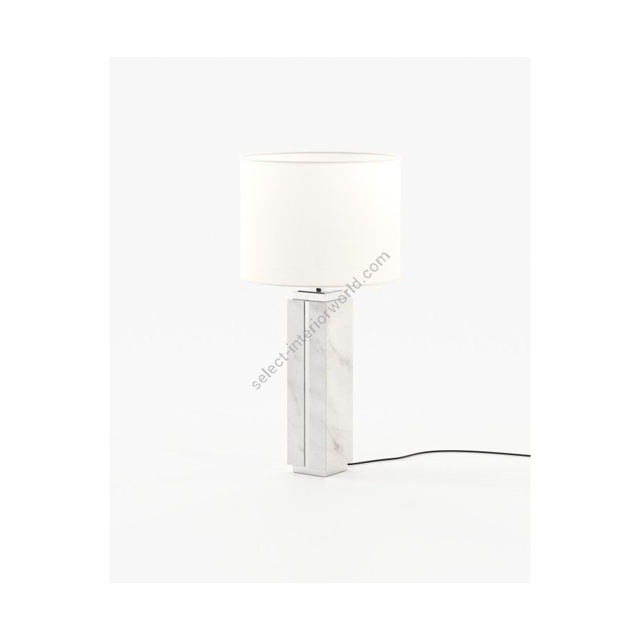 Jack table lamp is a majestic tall table lamp handmade in marble and featuring metallic details, ideal for bedrooms, entrance halls, and living rooms.