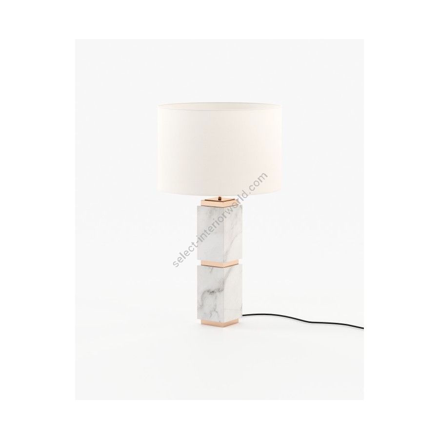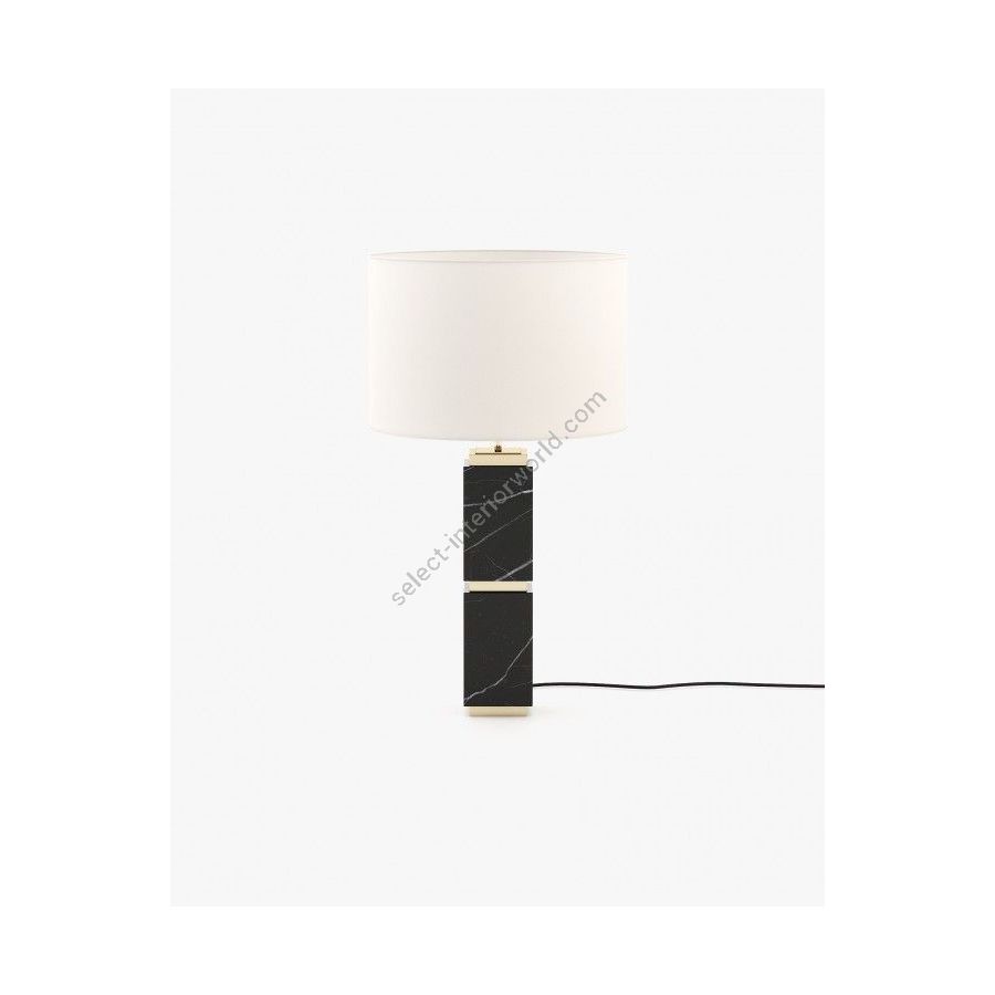 Quentin table lamp is a handmade marble table lamp featuring metallic details and a square base with a round lamp shade for an interesting geometric contrast, perfect for entrance halls.