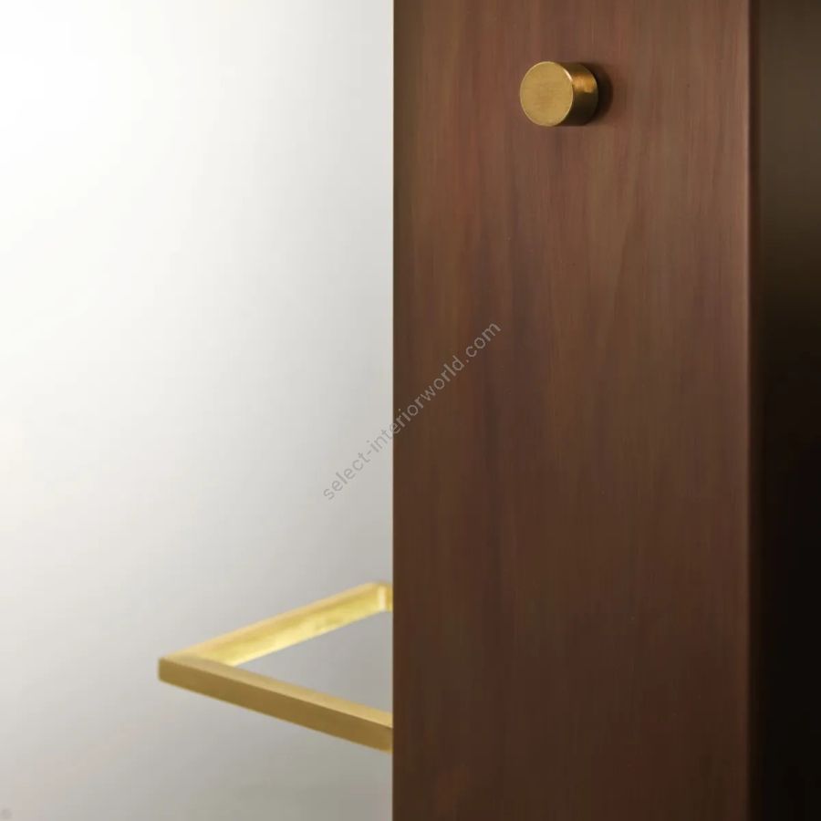 Floor lamp with burnished copper structure and decorative elements in satin brass.