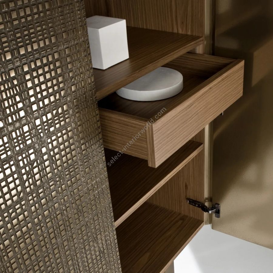 Equipped with internal drawers and shelves, it is available with a copper, tin, bronze or 9k gold liquid metal finish, as well as in the home bar version and in special dimensions.