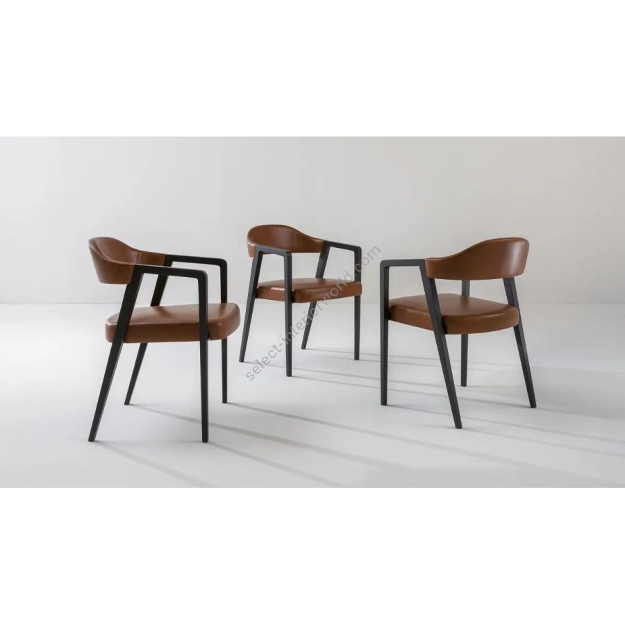 Chair with legs and armrests in plain, dyed or lacquered wood, and with seat and backrest upholstered in leather, velvet, or fabric.