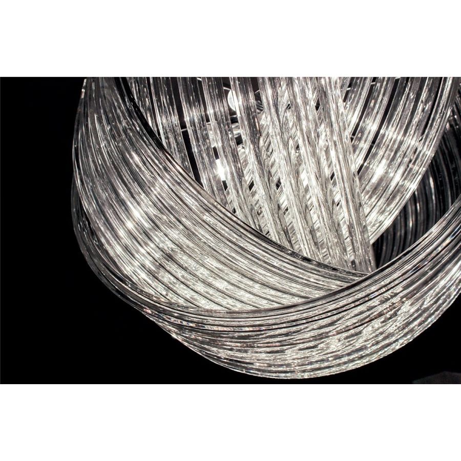 Lamp 8Xg9 (max 60W each), metal structure in the finishes polished chrome and bright light gold 24Kt. Murano glass rods. Luminaire in Murano crystal, with octogonal frame and overlapping pattern, space required: Ø80 cm. Metal frame in the finishes bright chrome and 24 Kt bright light gold. Electrification 8XE27 (max. 60 W each).
