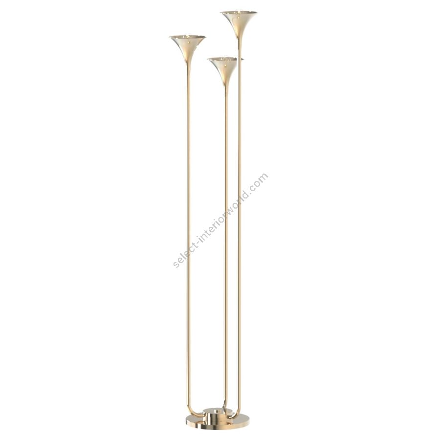This contemporary style floor model features three light points and a structure entirely in brass with a light gold finish. Designed for bedrooms and common areas.