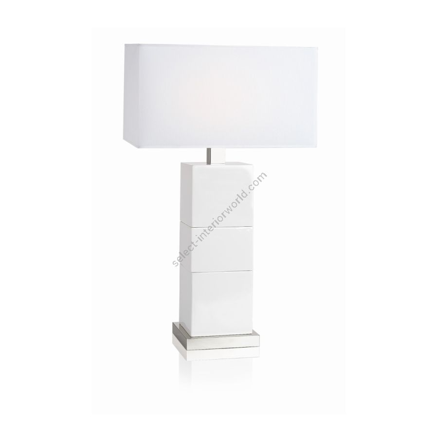 With a strong contemporary character, this model features a central structure in decorated ceramic, enriched with details and a base in brass in a chrome finish. The lampshade has a rectangular shape in white fabric. Available in various colors.