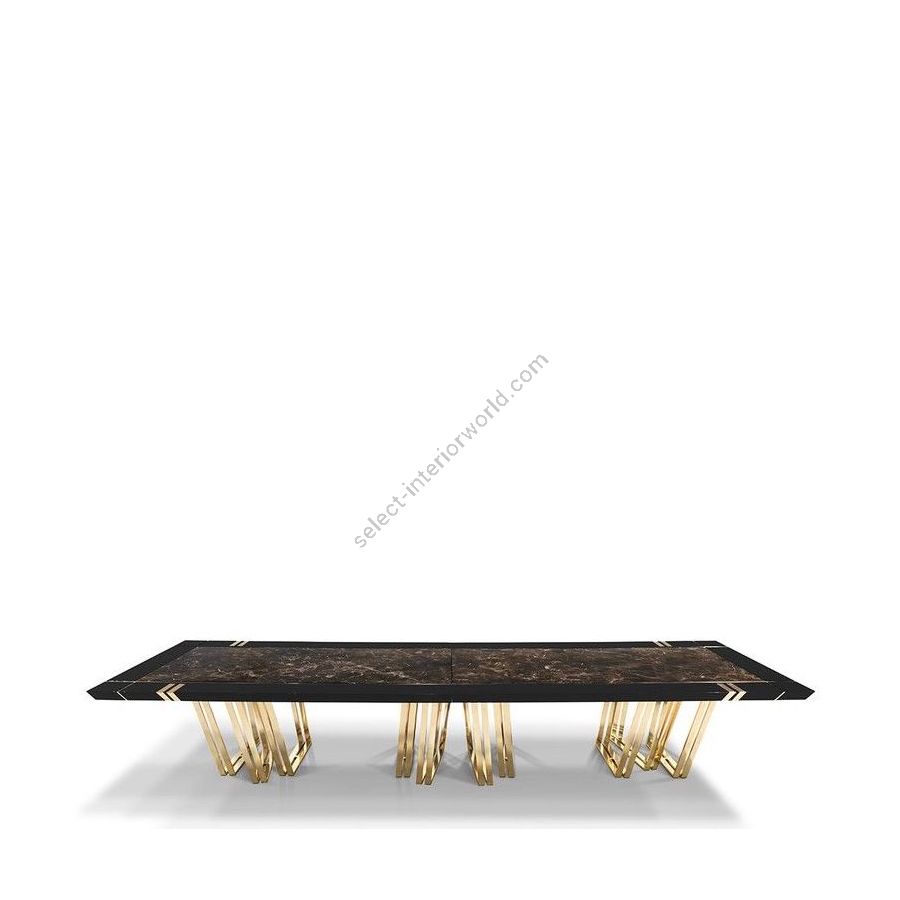 With its impressive 4-meter size, the Apotheosis XL Dining Table becomes the focal point of any dining room decor with its Greek mythology inspiration and modern lines. This combination of high-end materials such as brass, wood, and Emperador marble creates a striking visual impact on any project.