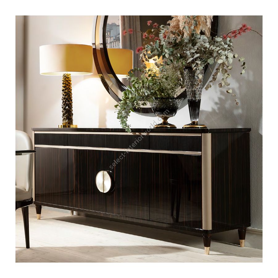 Sideboard from the Monaco collection is made of wood, metal and leather details.