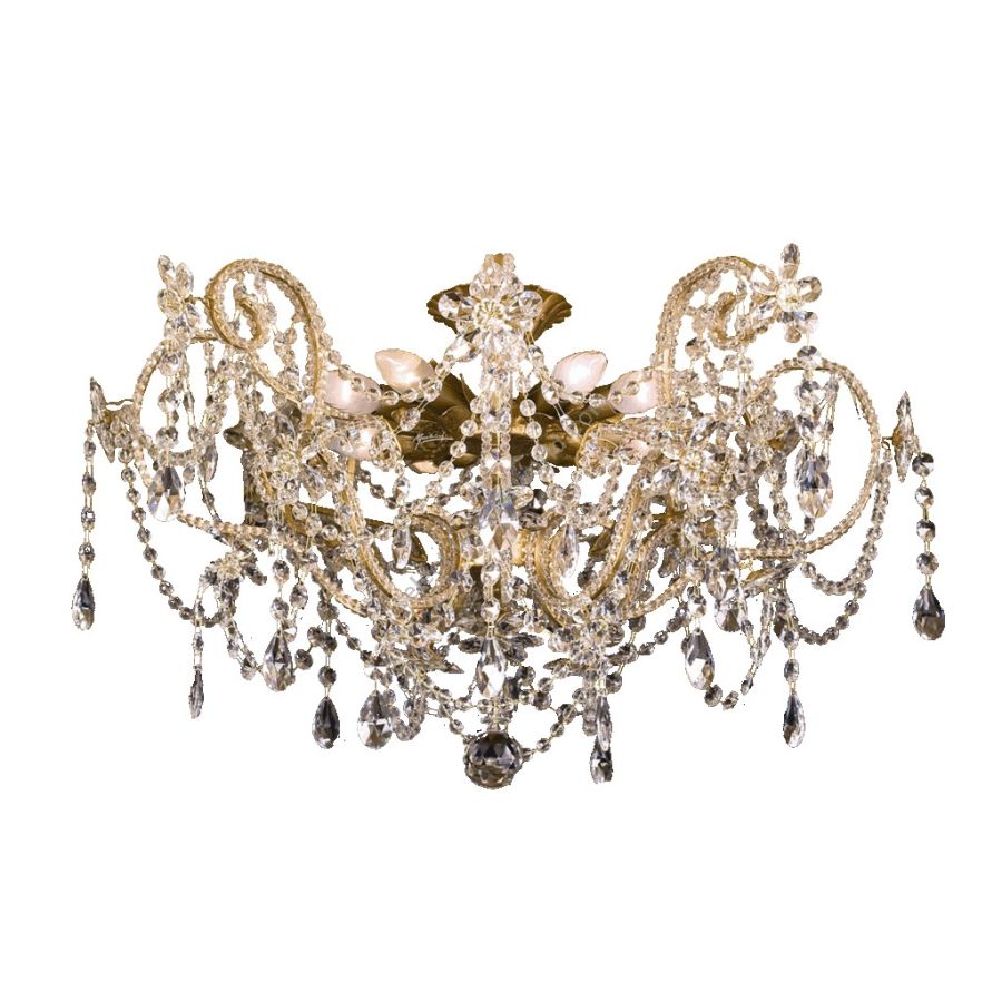 8 lights ceiling lamp in wrought iron with clear Bohemian crystal and clear pearl banding