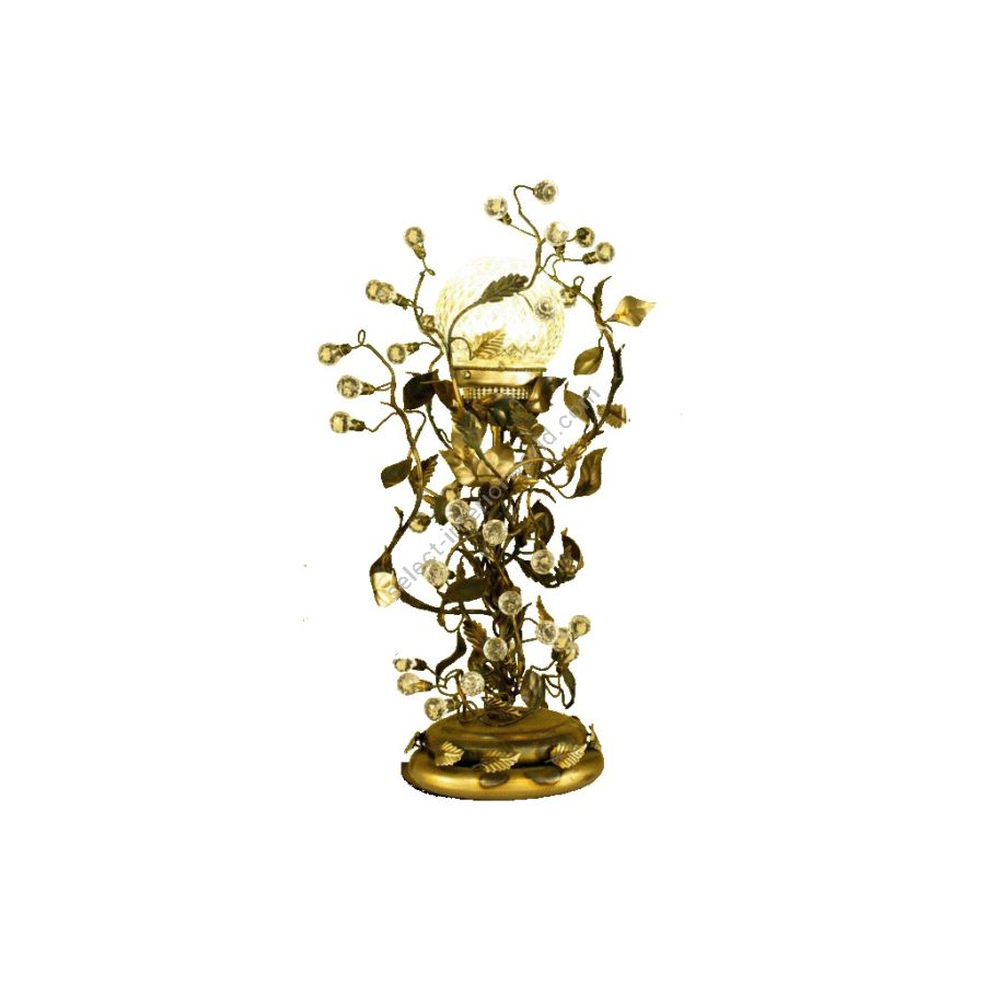 1 light table lamp in wrought iron with clear bohemian crystal, crystal round lampshades