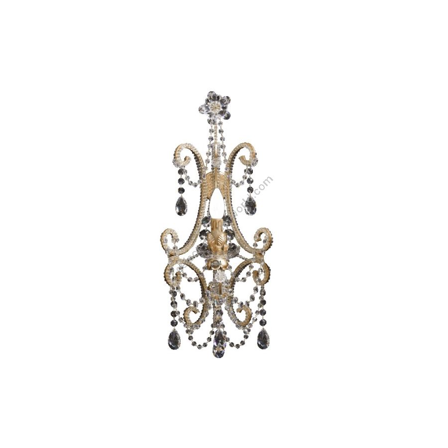 1 lights wall lamp in wrought iron with clear Bohemian crystal and clear pearl banding