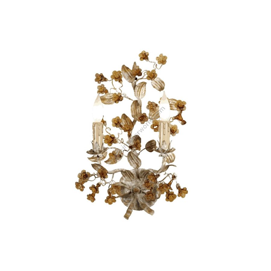 2 lights wall lamp in wrought iron with Bohemian crystal and Murano glass