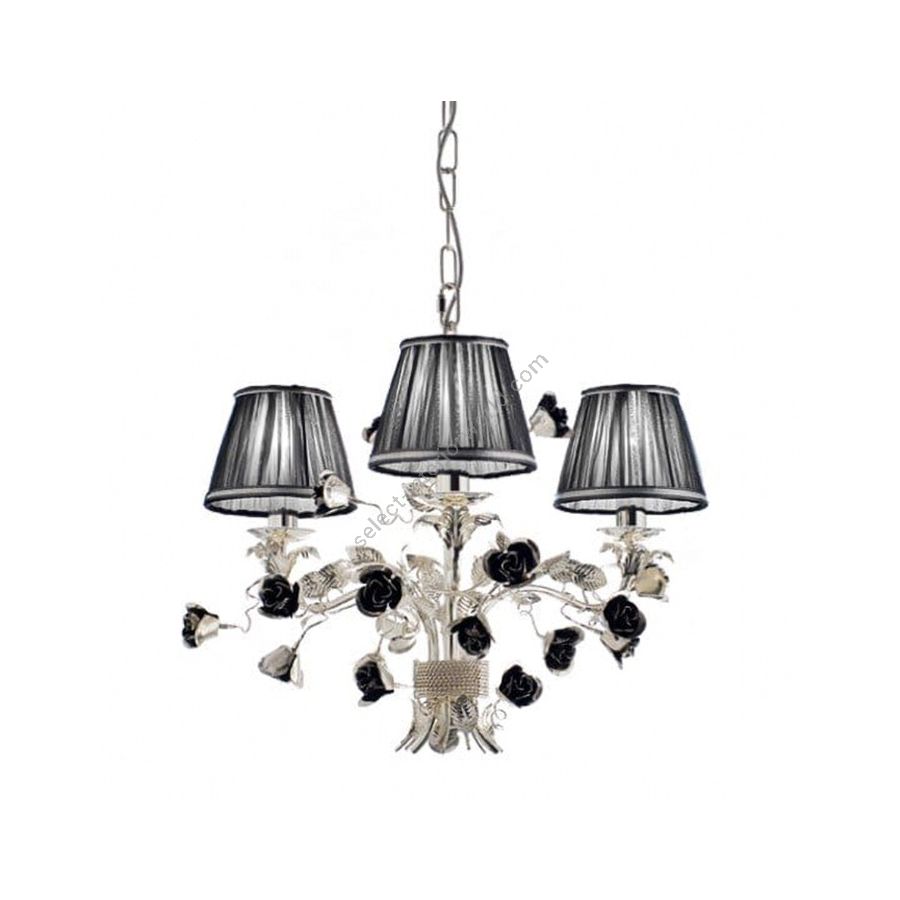Lighting fittings in chrome metal, this range includes chandeliers with and without shades, table and wall lamps. The light comes through the shades in a direct way.