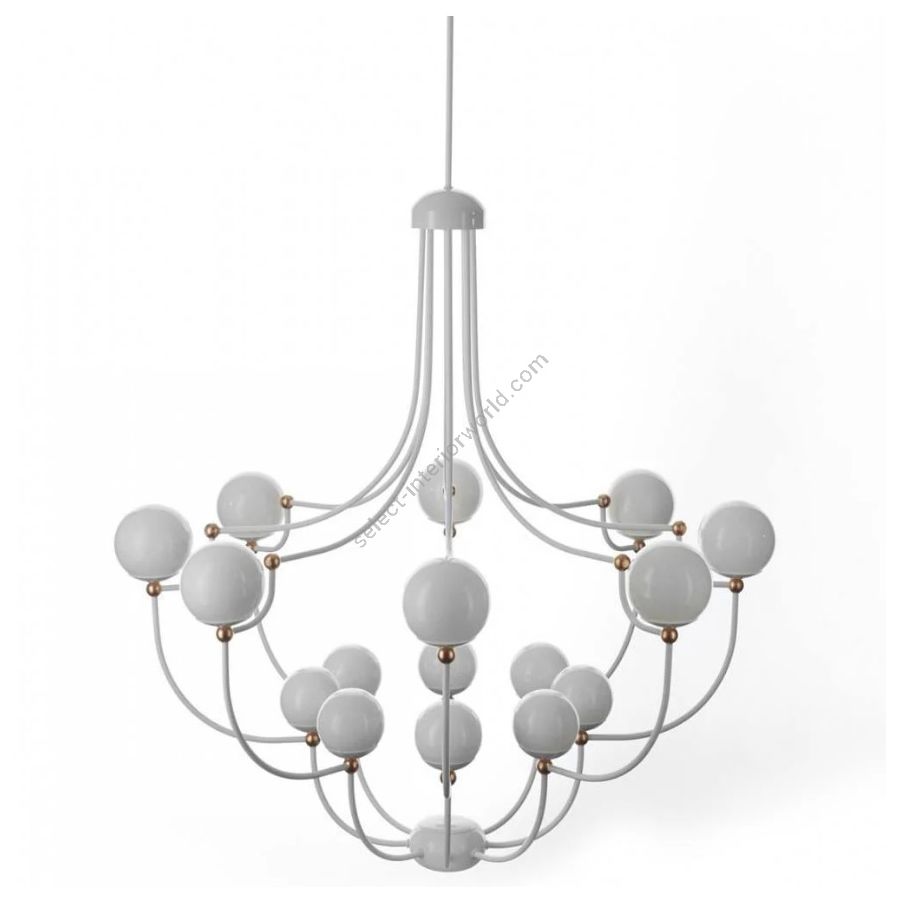 Available in white finishing with silver leaf details or glossy copper