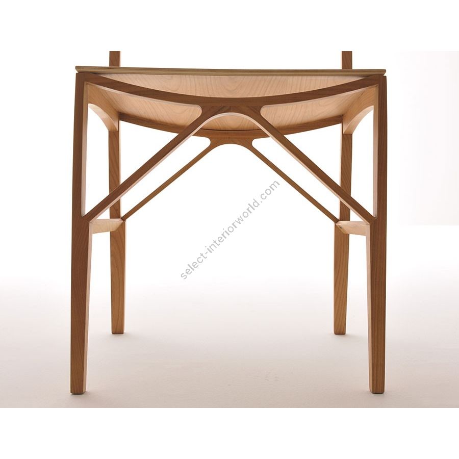Chair made of solid ash wood and seat in beech plywood veneered with ash. The particular bridge structure allows to equally distribute the weight and to reduce weight and thickness.