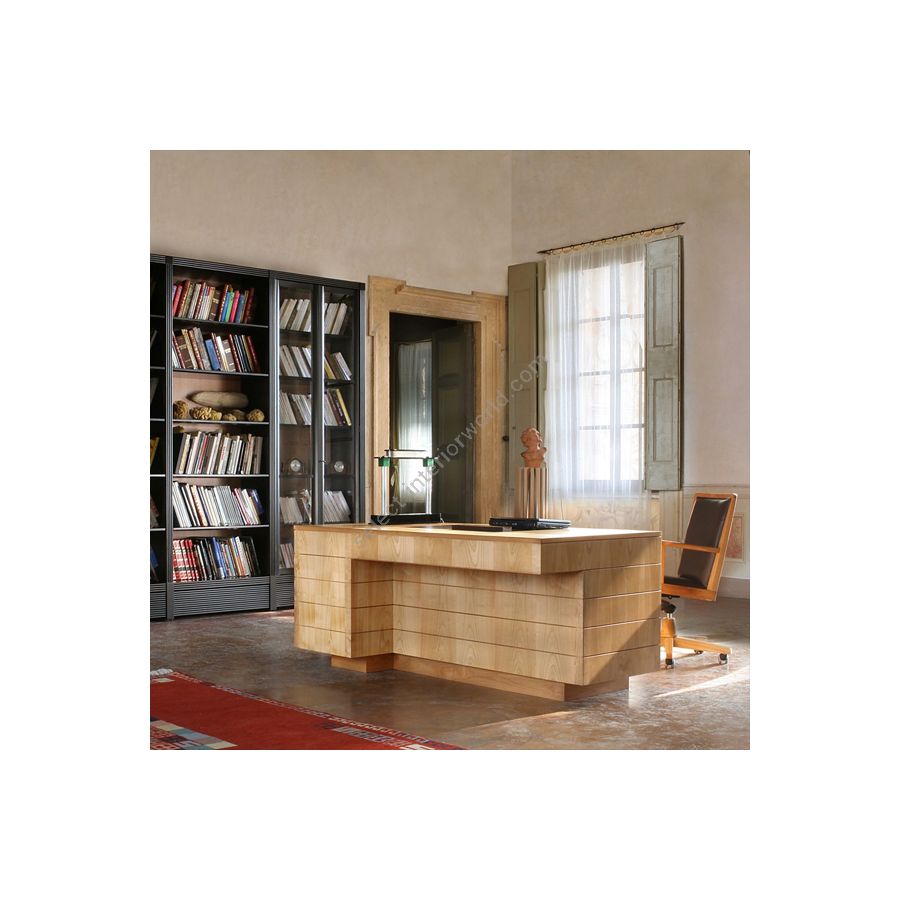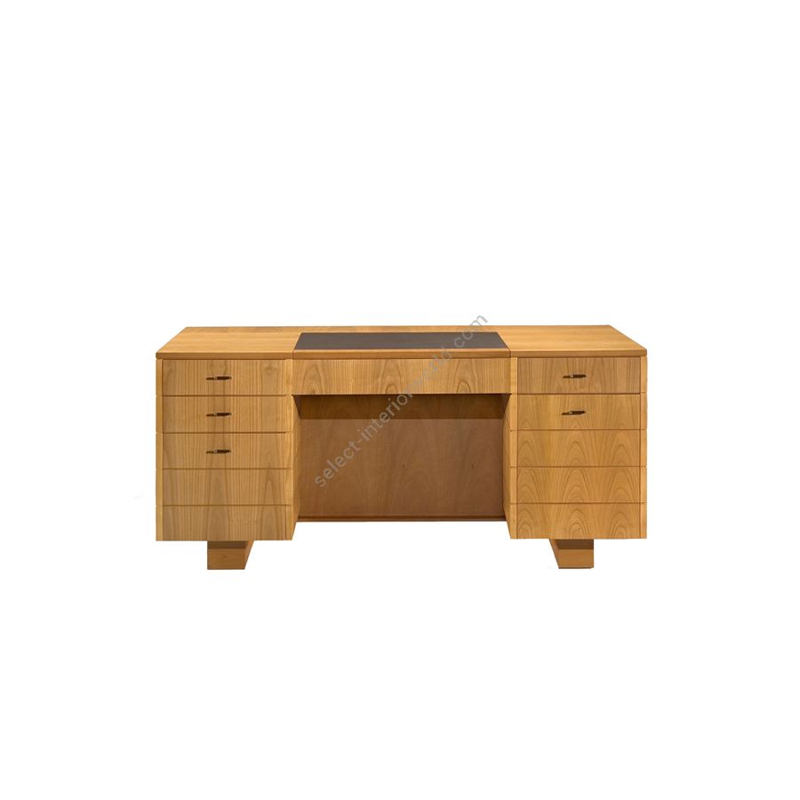 Developed by the MAAM Research Center, the Roma desk project was born from the study of the works of Guglielmo Ulrich. A rigorous, plastic design for this professional desk with important dimensions. Made of cherry wood with a writing surface, covered in leather, and storage compartments, Roma is a highly decorative desk that encompasses in the refined surface workmanship and construction details, craftsmanship and high quality typical of Italian cabinetmaking.