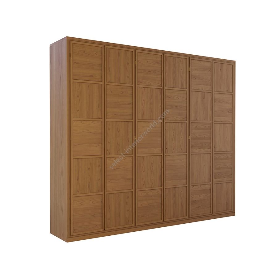 Modular wardrobe in cherry wood with fine “checkerboard” workmanship and contrasting grain veneer. Customizable interior. Accessories on request: shelf, shelf with coat hanger, chest of drawers with 3 drawers, tie rack, trouser hanger, safe, tilting coat hanger, mirror.