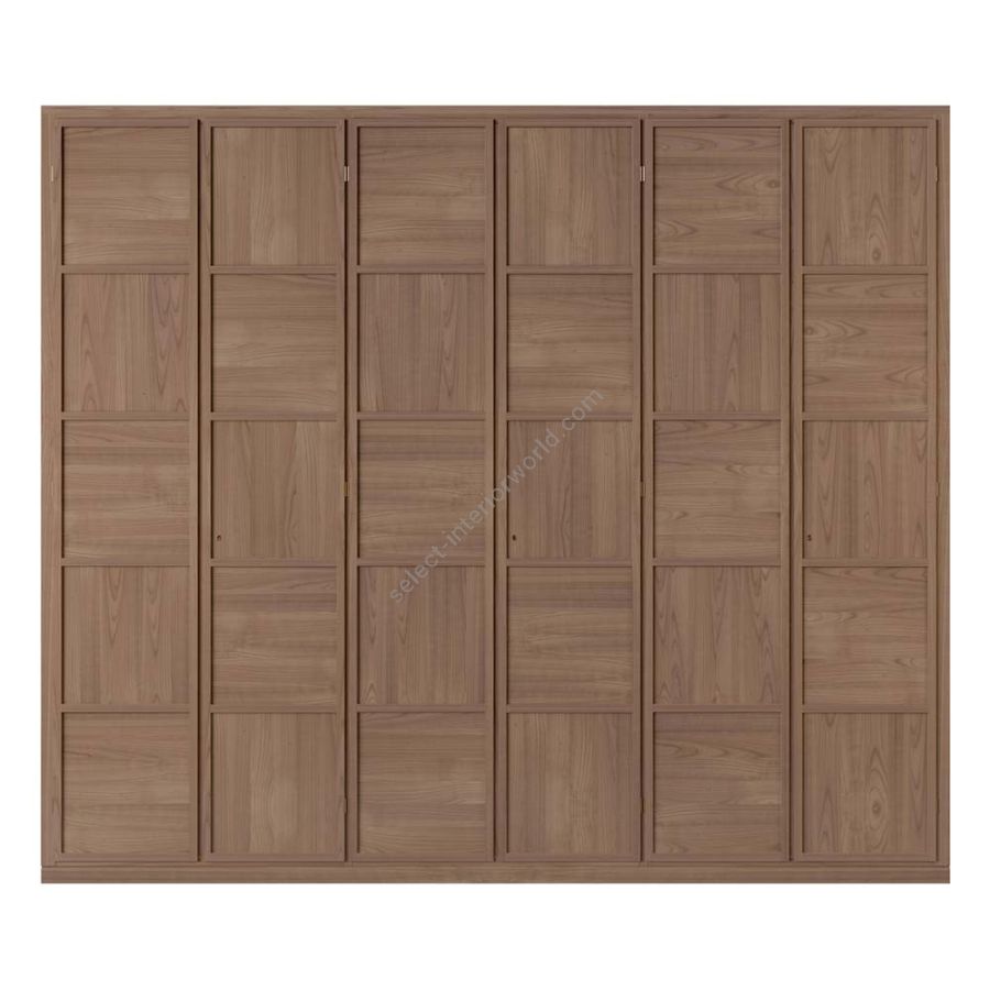 The simple geometric lines, with a crisscross pattern of the panels that highlights the natural grain of the wood, the values of purity and geometry of the decoration, characterize the wardrobes of the Scacchi collection. Discrete wardrobes, where the subtle texture of the frame marks the rhythm of the checkerboard surfaces, hiding the traditional door. A modular system of wardrobes for customized solutions.