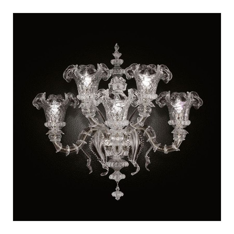 The collection Giudecca includes a multi-tiered wall lamp with 5 lights. Giudecca doesn’t renounce to the high quality and the preciousness of the materials. The balanced combination of elements, the well proportioned volumes, the harmonious and delicate decorations contribute to the lightness of the whole structure.