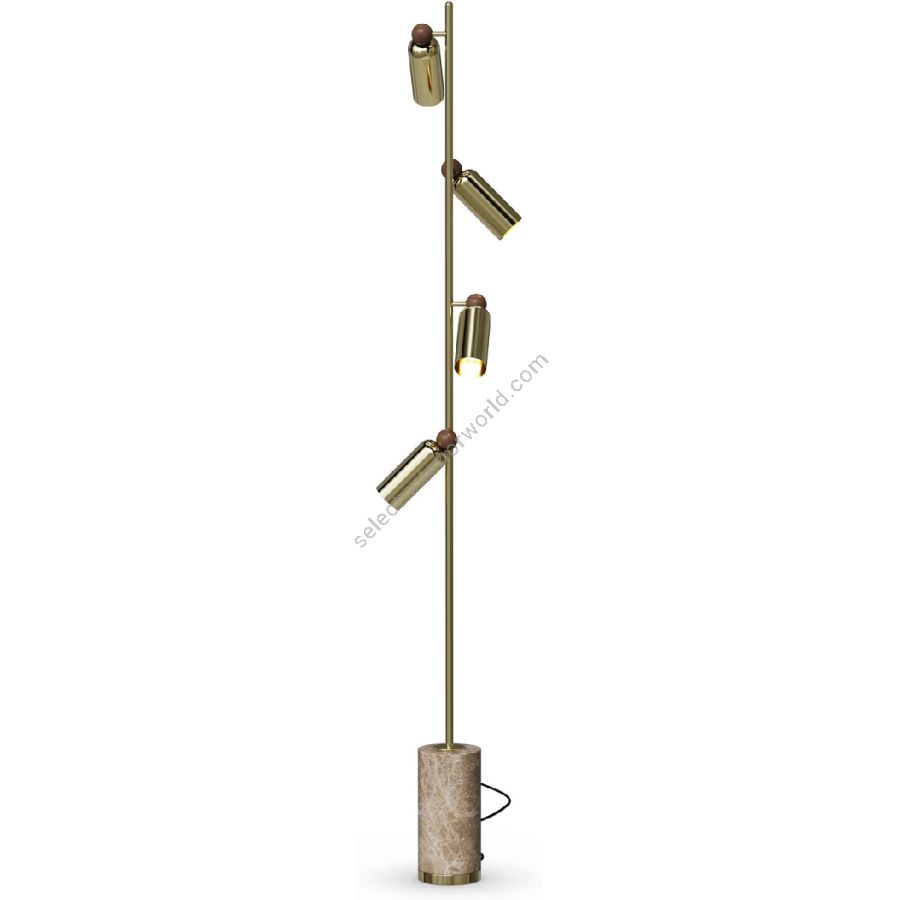 The Alan floor lamp is a striking blend of modern minimalism and luxurious materials, designed to elevate any space with its sculptural presence. Featuring a sleek brass-finished metal frame, this lamp is adorned with four adjustable spotlights, allowing for customizable illumination. Its cylindrical Light Emperor base adds a grounding, organic element, while walnut detailing introduces warmth and texture. The Alan floor lamp is both a functional lighting solution and an artistic statement, making it an ideal addition to contemporary interiors, reading nooks, or design-forward living spaces.