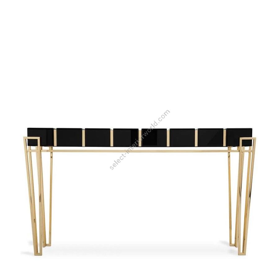 The glorious geometrical construction of the Nubian pyramids has resulted in a captivating and contrasting geometric design. This design showcases the complexity of noble materials, including glass, walnut root veneer, and brass. The Nubian Console is an elaborate embodiment of luxury and refined elegance, making it a promising focal point in any setting.