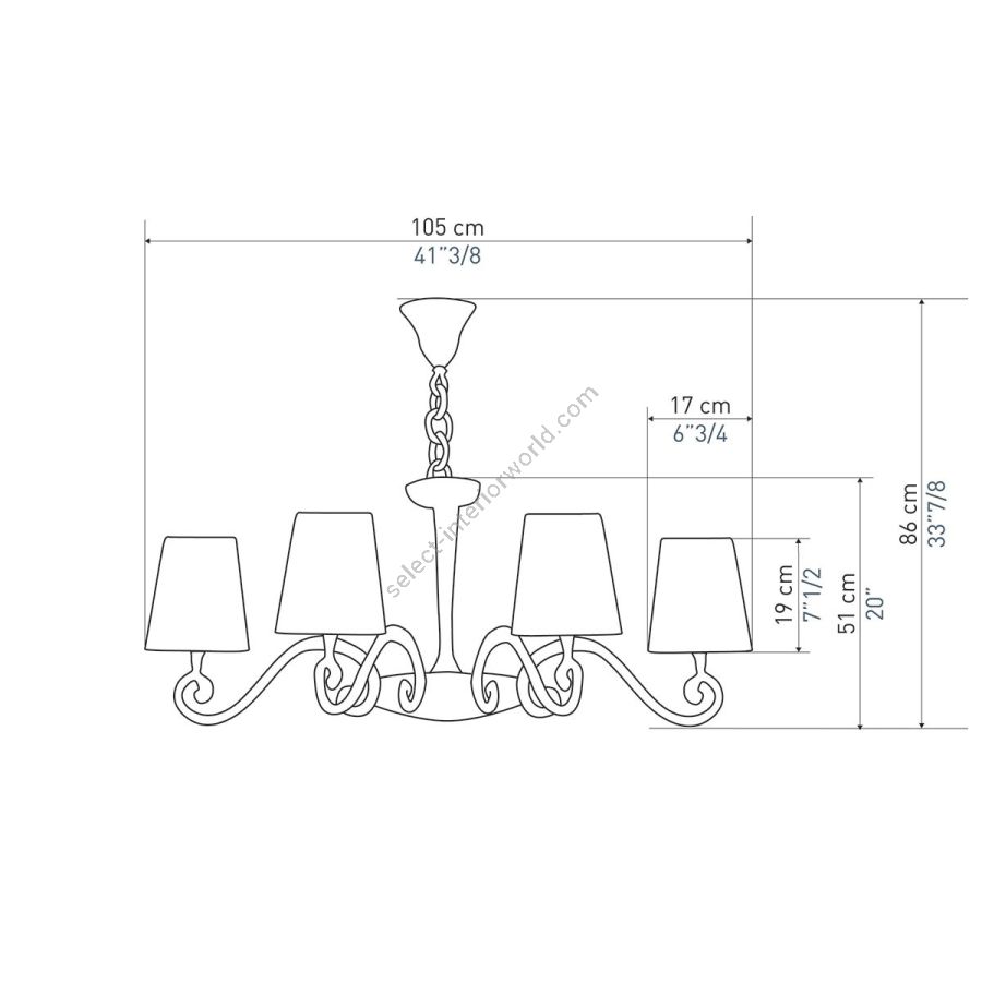 Width: 105 cm, Maximum: 8 x 40 w, Les Abat-jours peuvent être fabriqués dans 18 coloris au choix, The colour for the shades can be chosen out to 18 different hues