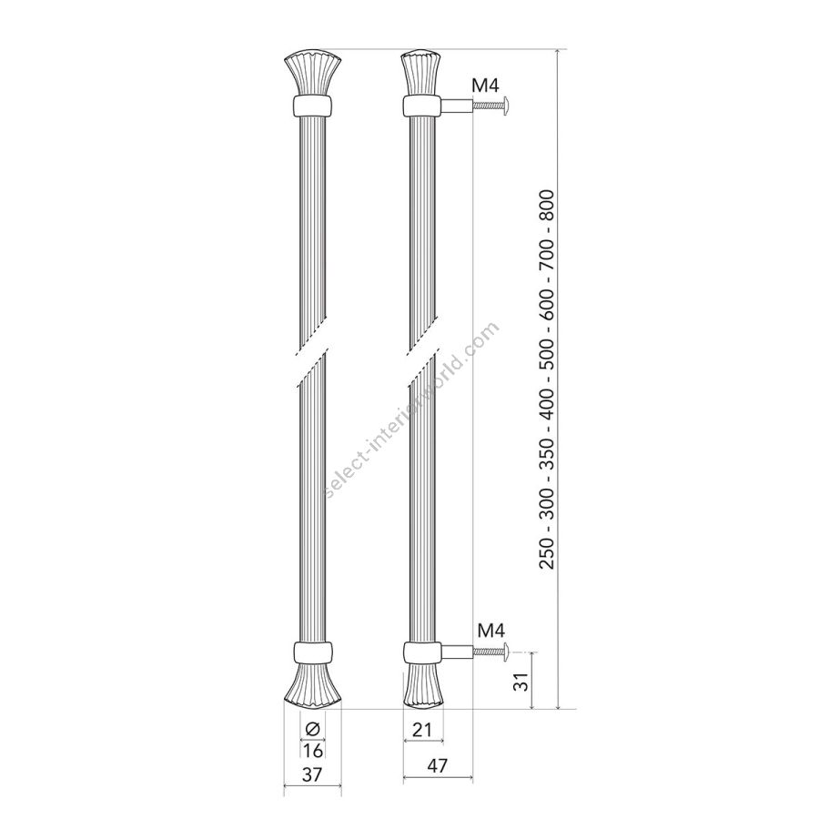 250 mm – 300 mm – 350 mm – 400 mm – 500 mm – 600 mm – 700 mm – 800 mm