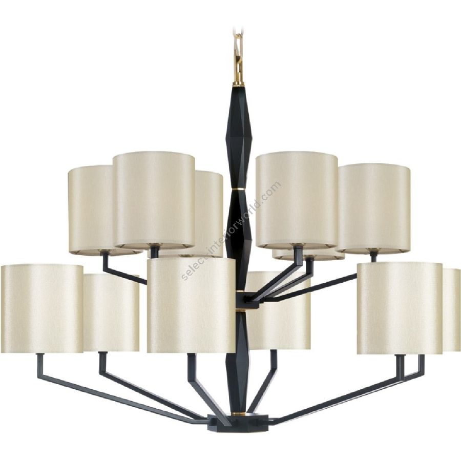 A refined line where matte black designs delicate geometries on the central element in solid faceted aluminium. The fabric shades refines the collection, smoothing the shapes.