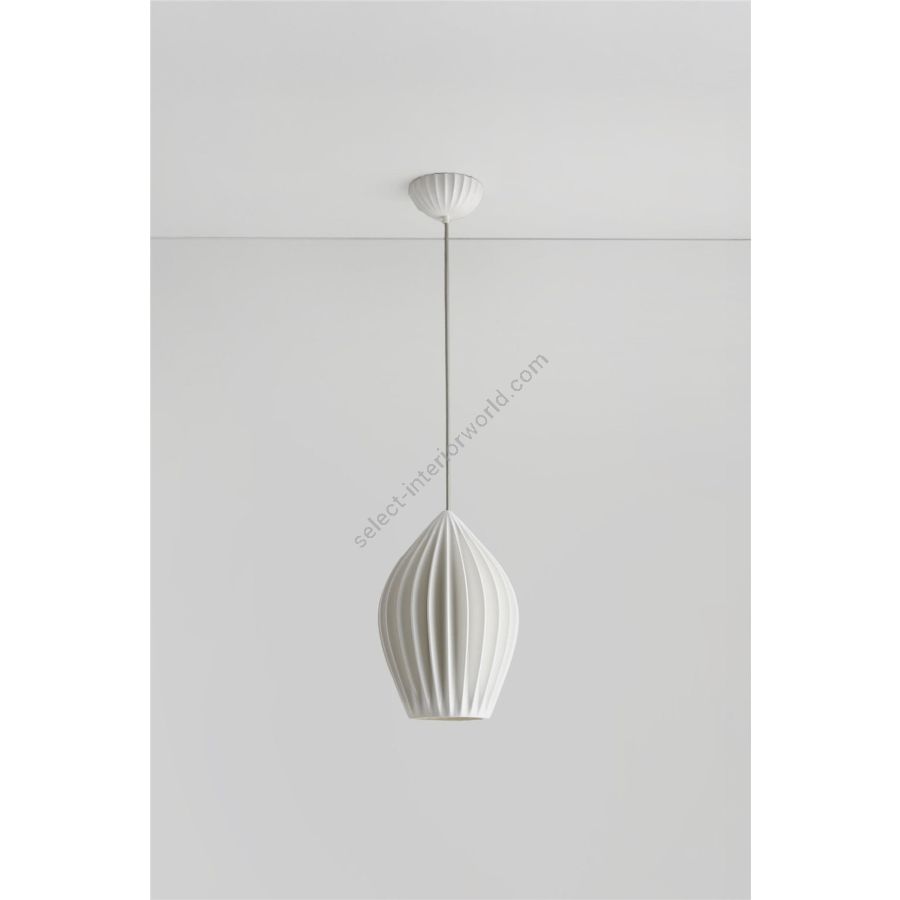 The Fin Pendant is a sophistiacted statement piece. Its bone china shade has been expertly moulded in to beautiful organic shapes, creating dramatic light and shade when lit. Available in three sizes, the lights are complemented by a matching bone china ceiling rose and our trademark cotton braided cable.
