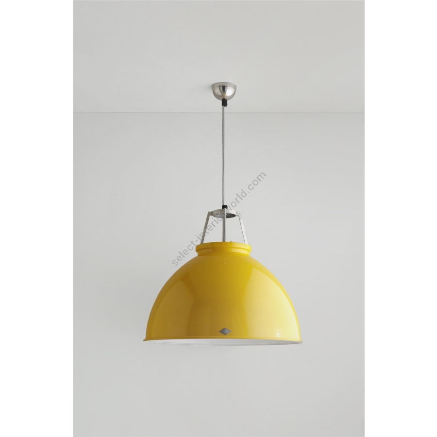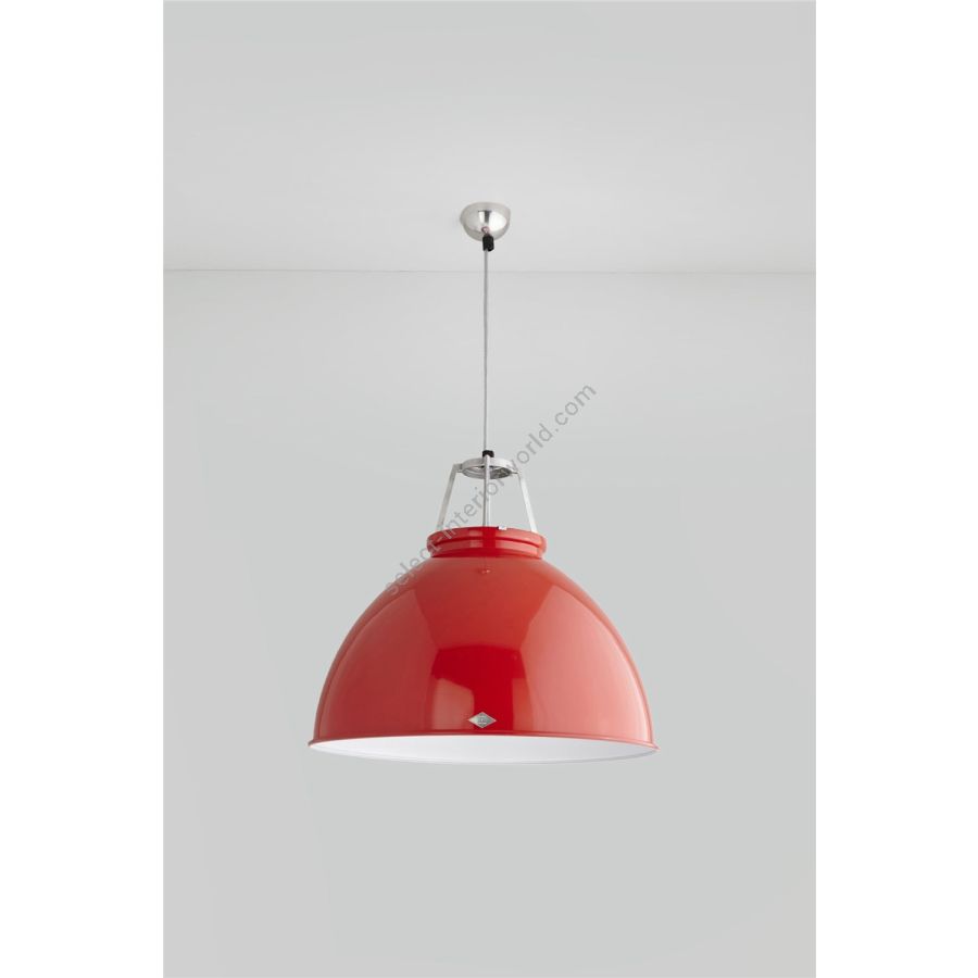An original 1940s design, frequently seen in factories and industrial units of the period. Available in three different sizes and an array of colours, including polished aluminium, black, yellow, olive green, putty grey, red and white. Supplied with an armour steel braided cable and a choice of contrasting coloured interiors. There is an optional etched glass visor to help reduce glare and create a softer, more diffused light.