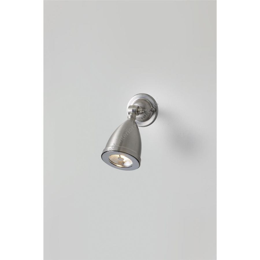 A shaded low voltage Spotlight, with a swivel base and adjustable knuckle joint. Available in nickel plated or weathered brass. The anti glare bar over the lamp makes this a discreet source of spot lighting. A beam angle of 8° spot, 20W. This product requires an additional low voltage halogen transformer to connect to a standard mains voltage circuit, see 'Accessories' for further details.