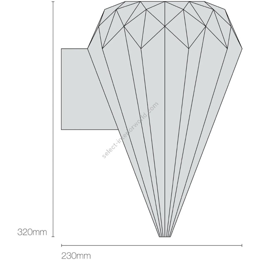The Hatton 3 Wall Light has a beautifully intricate bone china shade. Using a highly skilled process, we have been able to transform bone china into a multi-faceted, symmetrical, gem-like form. When switched 'off' the pendant has an angular sculptural beauty, and when 'on' it provides warm illumination with dramatic lines and shadows.
