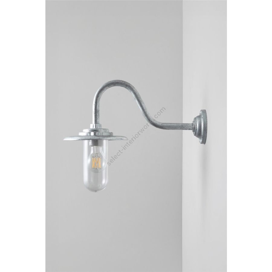 An Exterior Bracket Light (with reflector) with swan neck arm and round base is a traditional marine inspired fixture. Skillfully cast at our Birmingham metalworks and rated IP54, this is the perfect outdoor wall light. Available in galvanised or black. Galvanised guard sold separately. N.B. This product is galvanised underneath so the paint finish will not be completely smooth.