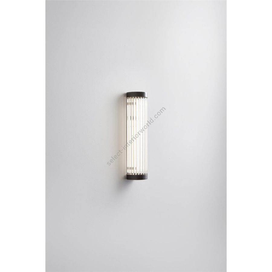 The 7212 LED Pillar Wall Light has the narrowest profile out of the Pillar collection. A welcome addition to any bathroom, its Art Deco-inspired curved profile is made of 8mm diameter solid glass rods. Available in weathered brass, polished brass or chrome plated finishes, and in two different sizes (H: 27cm x W: 7cm or H: 40cm x W: 7cm).