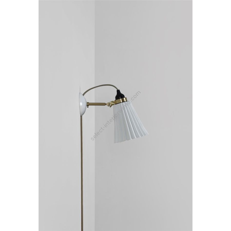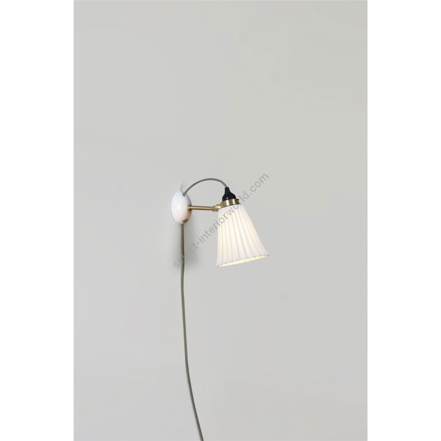 The handmade Hector Pleat Medium Wall Light with plug, switch and cable beautifully marries fine bone china with satin brass accents. Its iconic pleated shade exudes elegance, while the glossy bone china finish is gracefully complemented by the satin brass detailing. With its adjustable clamp, you can direct the light precisely where it's desired.