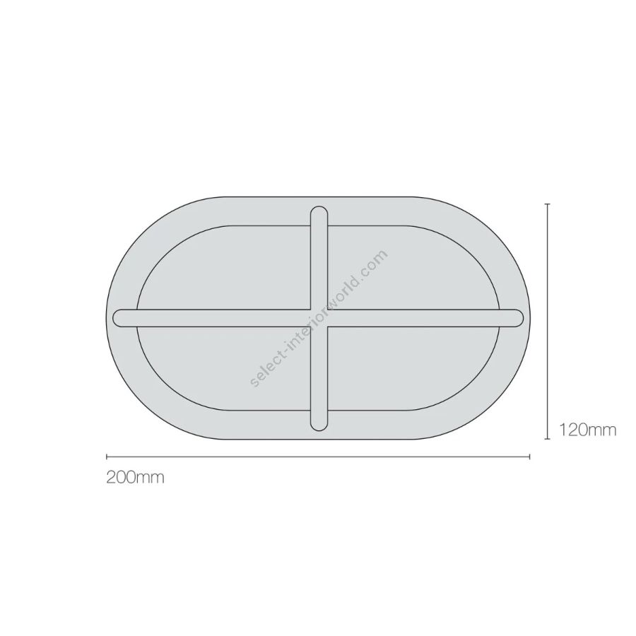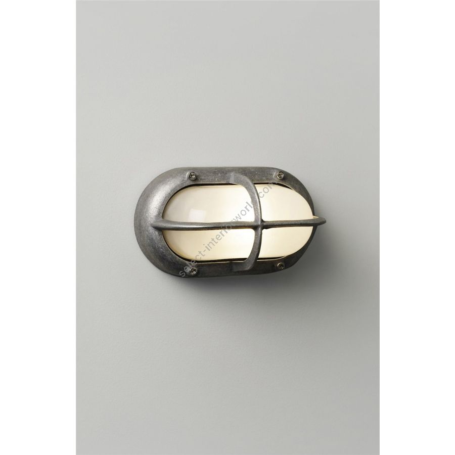 Small guarded oval bulkhead in aluminium or brass . Frosted glass diffuser. Front bezel secured by stainless steel socket head screws. Rear cable entry. Through backplate fixing.