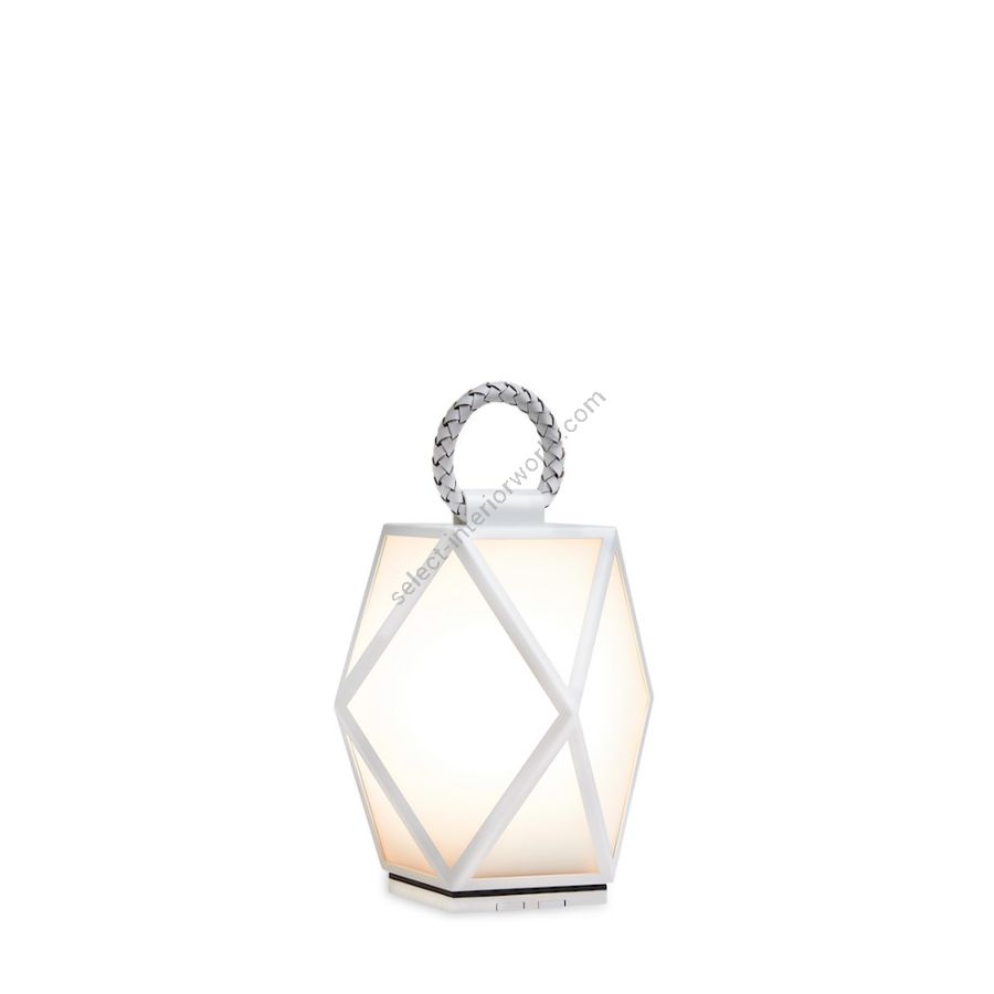 A distinctive and innovative lantern, featuring elements, such as the braided leather handle, for an exclusive and refined outdoor area. The rechargeable battery version is widely used, with increasing applications in both the commercial and maritime sectors. The battery version is now available in small, medium and large sizes.