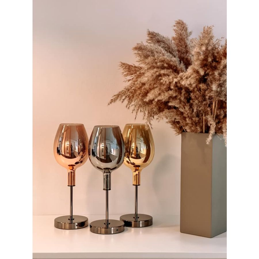To create Rosé Cordless, the designer Danilo De Rossi aims to interpret the light in the environment with an unusual and ironic look, playing with the sinuous shape and its sparkling finishes, inspired by the classic outline of the wine chalice, reinterpreted in an unusual way in the form of a lamp with original metallic shades.