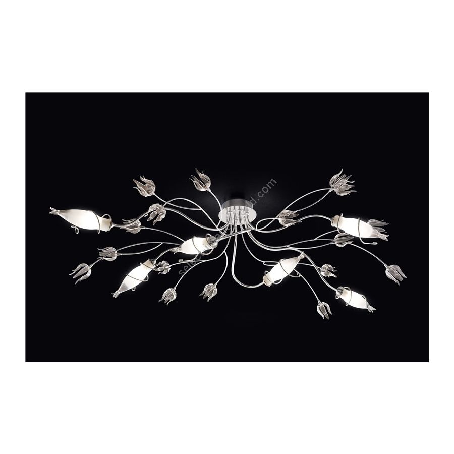Ceiling lamp with a contemporary and floral design, that perfectly adapts to the following home environments: bathroom, kitchen, living room, lounge and bedroom available in 2 colour combinations with reference to the frame and in 2 colour combinations with reference to the glass