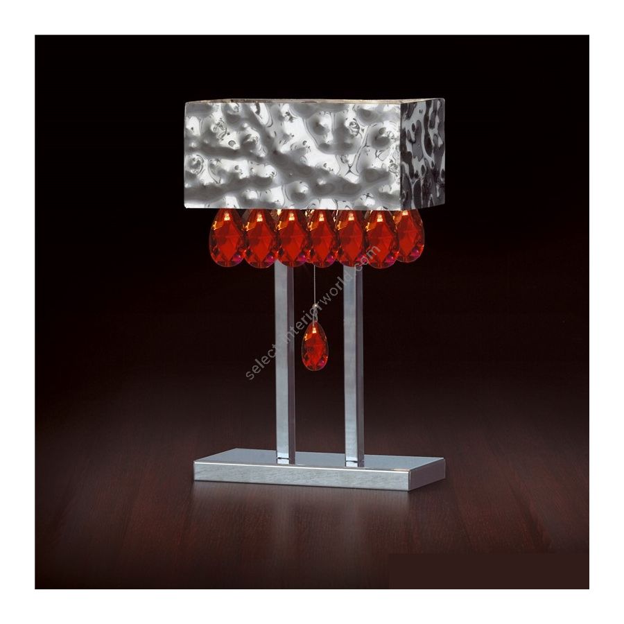 Table lamp with a structure in hammered metal and coloured crystal drops.