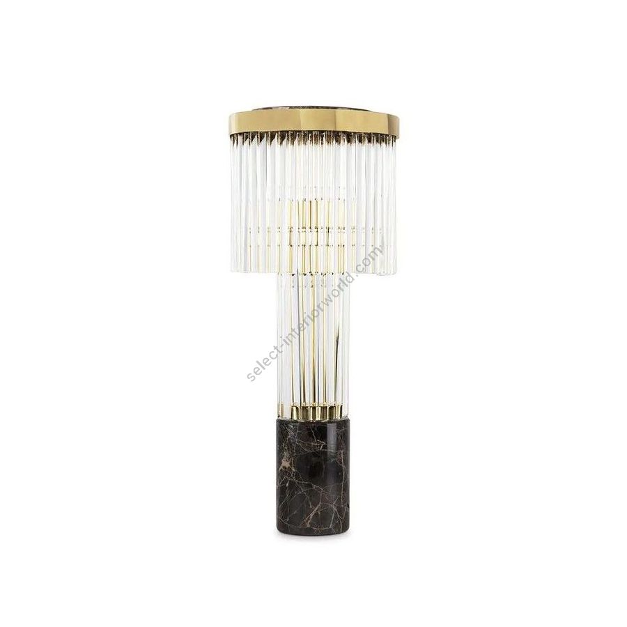 A representation of the architectural lines of lighthouses in the shape of a luxury table lamp. Pharo I Table Lamp has a marble base that supports the delicate crystals, topped with a brass plate. Pharo I is the perfect finishing touch for any desk or bedside table.