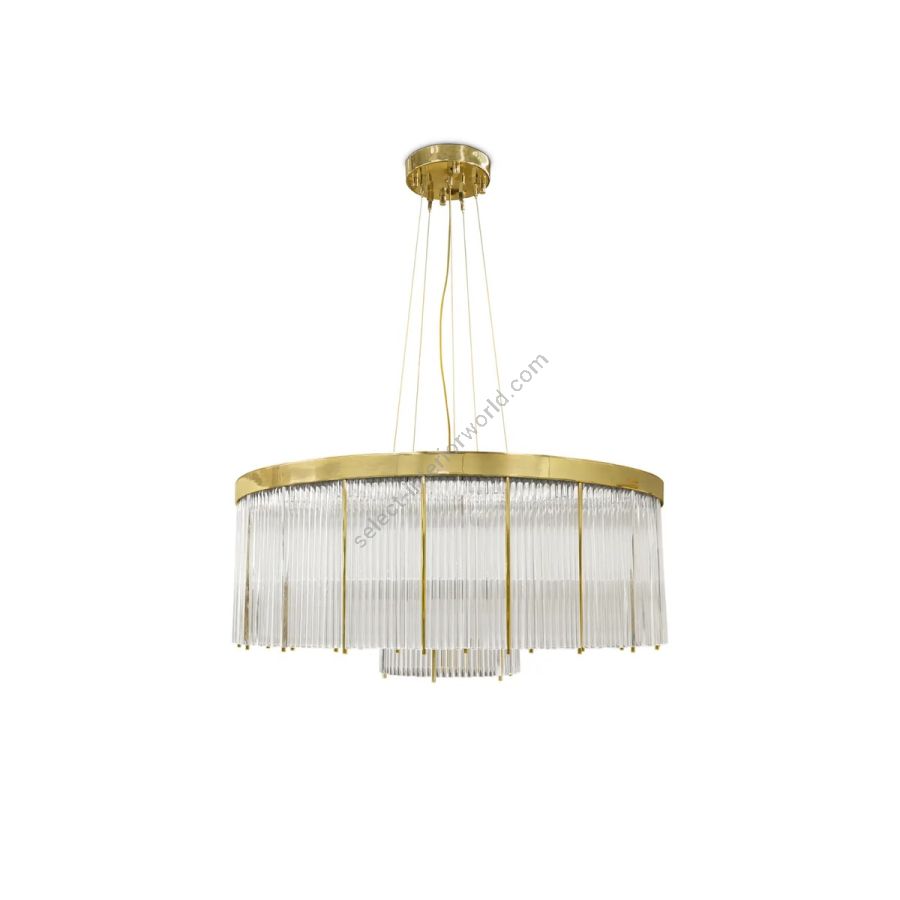 Inspired by the historic lighthouse Pharos, built hundreds of years ago, this suspension light embraces the robust yet simple architecture of lighthouses. The Pharo Suspension Lamp is a gold-plated brass and crystal fixture made to illuminate the most impressive interiors with endless elegance.